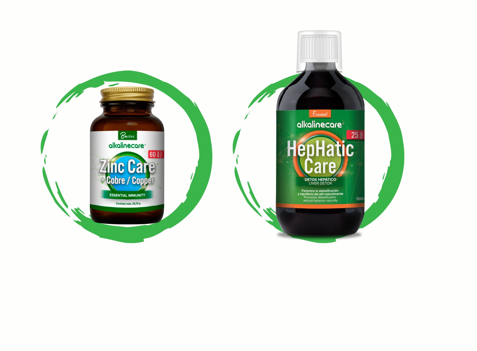 Zinc Care + HepHatic Care:1 cápsula por la noche + 1 tapón diario, disuelta en agua mañana o noche durante 25 días.